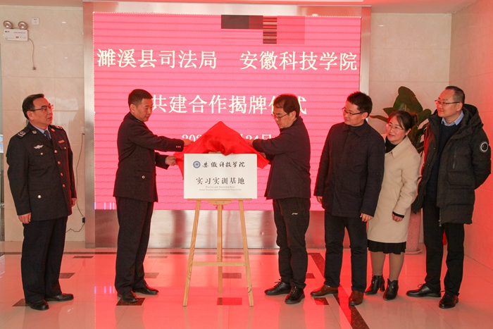 签约仪式最后,马跃和李晓东分别代表政校双方签订共建合作协议,并共同为“安徽科技学院实习实训基地”揭牌。(特约通讯员:高晓宁 摄影:王迪 审核:牛永辉)
