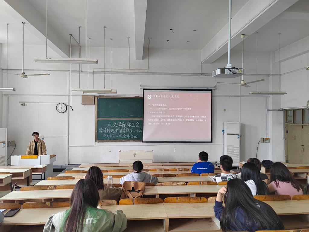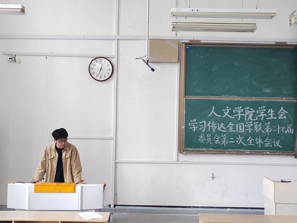 为认真学习贯彻党的二十大精神,团结带领广大同学坚定跟党走、奋进新征程,学习传达全国学联第二十七届委员会第二次全体会议精神,人文学院学生会于5月24日中午召开部门负责人会议。本次会议由人文学院学生会学生联络部负责人盛化明主持召开。