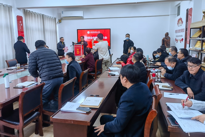 12月6日下午,人文学院在学知楼324会议室召开全体教职工大会暨教代会、工代会代表选举会议。学院党政领导和全体教职工参加会议。会议分工作布置、代表选举两个阶段进行,分别由党委副书记、副院长李晓东和正处级组织员张严政主持。
