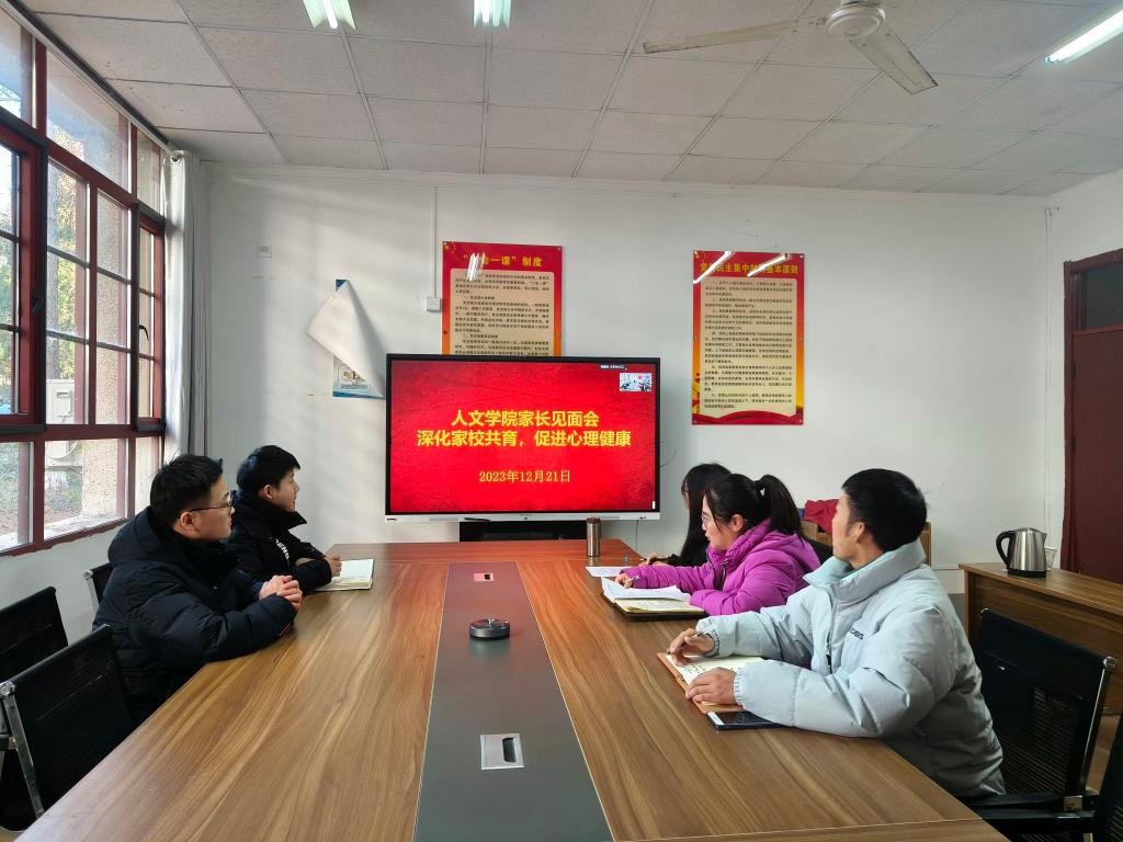 为深入贯彻落实《高等学校学生心理健康教育指导纲要》,进一步加强大学生心理健康教育工作,推进家校协调共育,守护好大学生心理健康,有效防范校园心理危机事件的发生,12月21日,人文学院召开线上“深化家校共育促进学生心理健康”家长会,学院党委副书记李沙娜、全体专职辅导员和近百位学生家长参会。