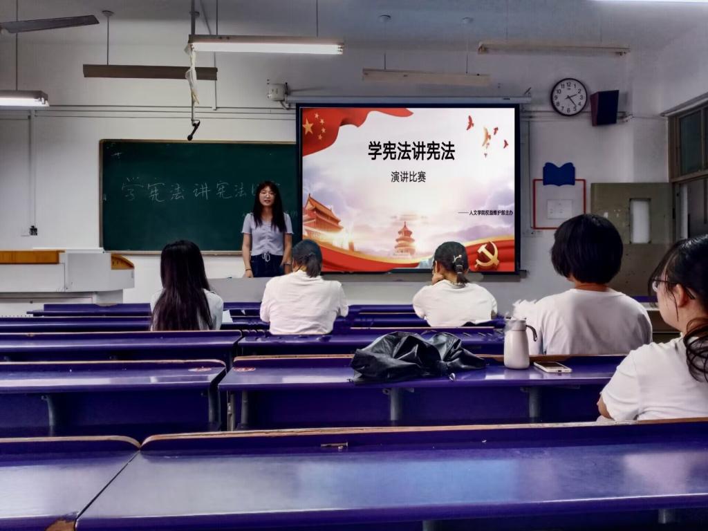 为弘扬宪法精神,维护宪法权威,增强法制观念, 9月18日下午,学院于求b207举办“学宪法 讲宪法”演讲比赛。人文学院法学系教研室主任张晓云、法学201闫祖瑶,法学202王心悦作为评委出席。