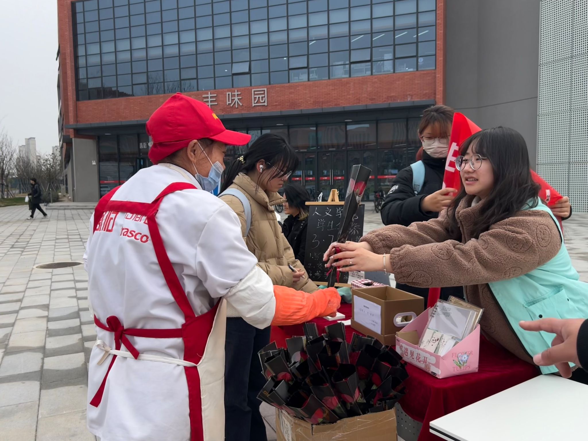 开岁发春兮,百卉含英。“情绪交换商店”“玫瑰花赠送”等活动,吸引众多女生流连驻足、踊跃参加。现场工作人员手持鲜花,献给敬爱的女性老师,送给辛勤的食堂阿姨,送给每一个来参与活动的“她”。每一朵鲜花都带着最真挚的祝愿,有了最终的归宿。