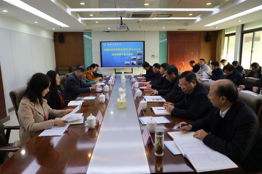 按照教育部普通高等学校师范类专业认证工作部署,11月26至29日,由浙江工商大学施建祥教授任组长,陕西师范大学吕敏宏教授、廊坊师范学院张秀梅教授、江苏省教育评估院邱白丽副研究员、湖州市南浔高级中学正高级教师罗慧英,专家组秘书安庆师范大学陈磊为成员的教育部普通高等学校师范类专业认证专家组一行6人,对安徽科技学院英语专业第二级认证进行现场考查。