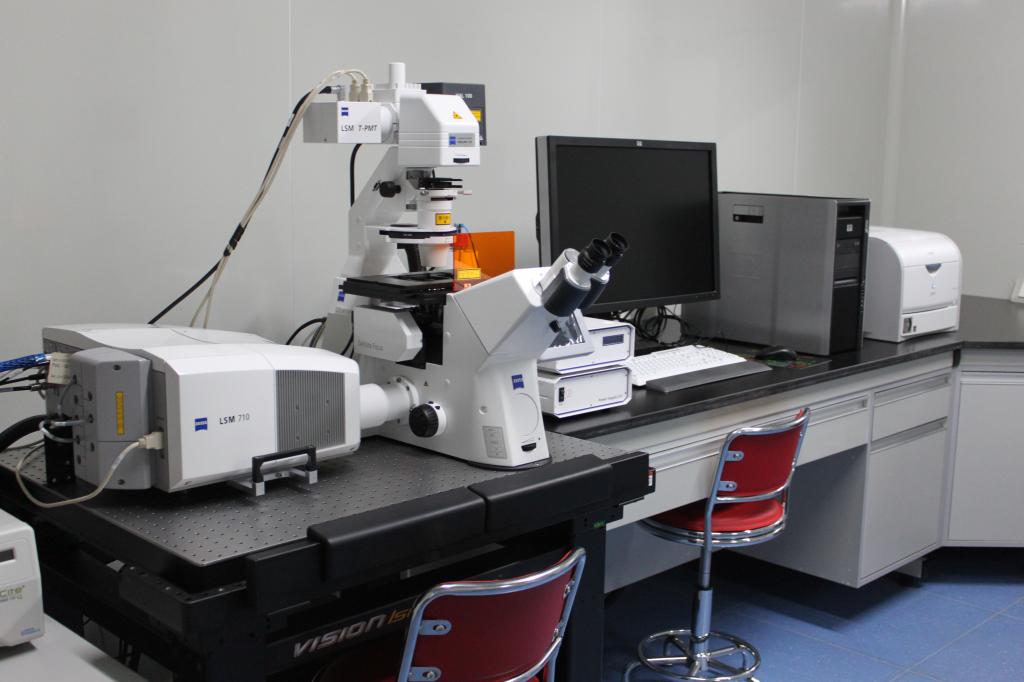 本研究院现有实验室面积约2400平方米,目前登记在账仪器设备固定资产总值约3000万元,包括9台100万以上的大型仪器设备,20台20万以上的大型仪器设备。如透射式电子显微镜、扫描电子显微镜、原子吸收仪、气相色谱-质谱联用仪、液相色谱-质谱联用仪、X射线衍射仪、同步热分析仪、红外光谱仪、荧光光谱仪、电化学发光工作站、激光扫描共聚焦显微镜、正置荧光显微镜、倒置荧光显微镜+显微操作系统、实时荧光定量PCR系统、超速离心机、冰冻切片机、全自动包埋机、快速蛋白质纯化系统、荧光化学发光凝胶成像系统、全波长酶标仪等。