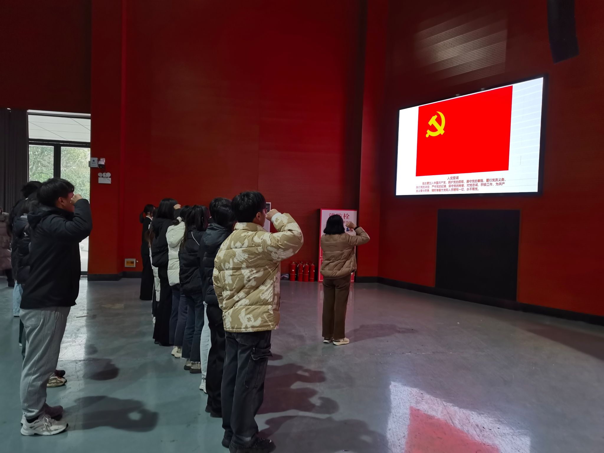 仪式在雄壮的《国际歌》中拉开序幕。王传林宣读学院党委2024年下半年新发展党员名单,参会领导为新发展党员佩戴党员徽章。在彭丽萍带领下,全体新发展党员面向党旗,举起右拳,庄严宣誓,以铮铮誓言表达对党的无限忠诚和为共产主义事业奋斗终身的坚定信念。