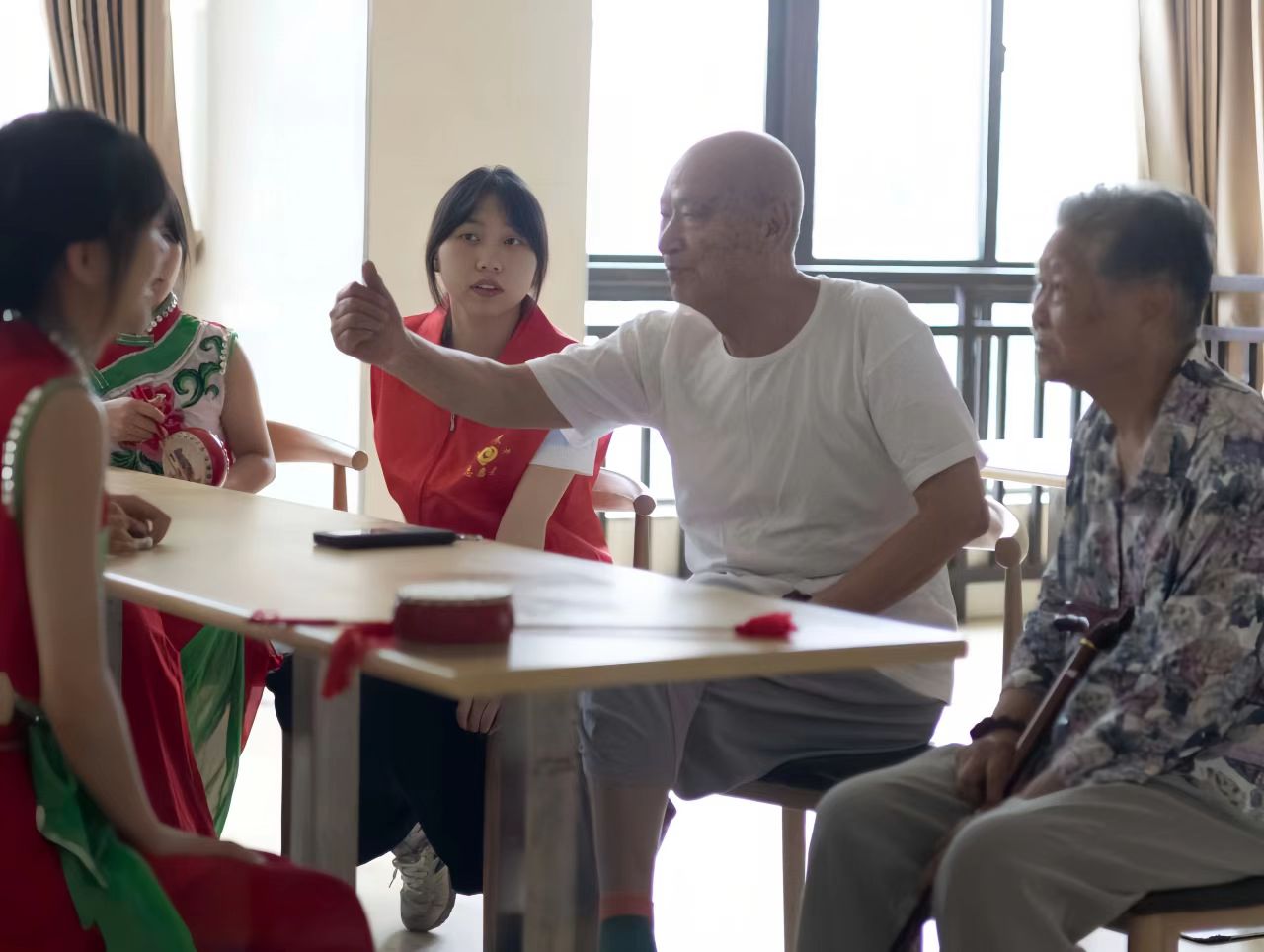 实践团队到达养老院后,团队成员们来到老人的宿舍,陪老人聊天,听老人诉说他们的故事,并向他们分享自己日常生活中的趣事,房间里充满了欢声笑语。随后,团队成员们希望老人们能够多运动,拥有健康的身体,便带领老人们一起做手指操。为丰富老人们的空闲时间,团队成员们积极表演准备好的凤阳花鼓节目,看着成员们洋溢着青春活力的舞蹈,老人们也受到了感染,脸上洋溢着笑容。在老人用餐期间,团队成员积极配合餐厅负责人进行食物配送,因有些老人行动不便,团队成员们便主动承担起为老人喂饭的责任,动作虽显笨拙,但老人脸上满是感动。最后,团队成员对养老院工作人员进行采访,深入了解凤阳福康养老院的发展过程,明白了养老院中心问题不在于养老院的设施好坏,而在于社会关注度,老人们真正需要的是人文关怀。“老吾老以及人之老”,关爱老人,需要大家把博爱传承下去,让中国足彩网的老人得到温暖。
