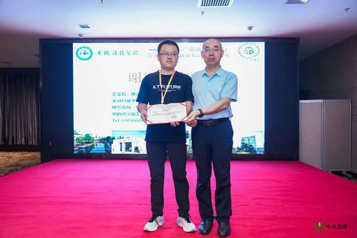 我校王宝石副教授在“农产品精深加工与高值化利用论坛”专题论坛中,以题目为《新型加工策略提升谷物麸皮中功能活性成分的生物可及性》作出报告,展示了新型物理场处理、现代固态发酵技术等多种新型加工策略对谷物麸皮功能活性成分释放及生物利用率提高的显著效果,为谷物麸皮的功能活性成分的高效制备及生物利用奠定基础。会后,专家组委员会为王宝石副教授颁发演讲证书。
