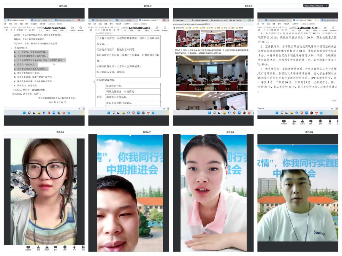 为更好推进暑期“三下乡”社会实践活动的开展,我校食品工程学院省级“三农情”你我实践同行团于7月14日上午,通过腾讯会议召开了“三下乡”实践活动推进会,团队全体成员参加。