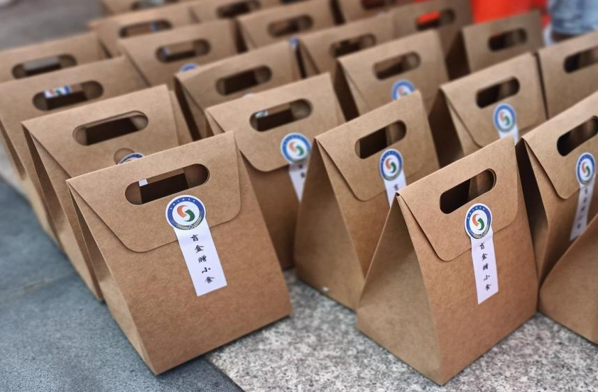 迎新现场,近300份盲盒摆放整齐,并由迎新工作人员热情地送到每位新生的手中。新生接过盲盒,感到既惊喜又温暖,盲盒里面除了一枚熠熠生辉、造型精美的校徽,还有三种口味的曲奇饼干、甜甜圈、糖果等特色手工点心,还有书签、写字笔、学习本、书夹等学习用品。新生立马把校徽戴上,骄傲地说,“我是安科人了!很暖心!谢谢志愿者,谢谢学校!”
