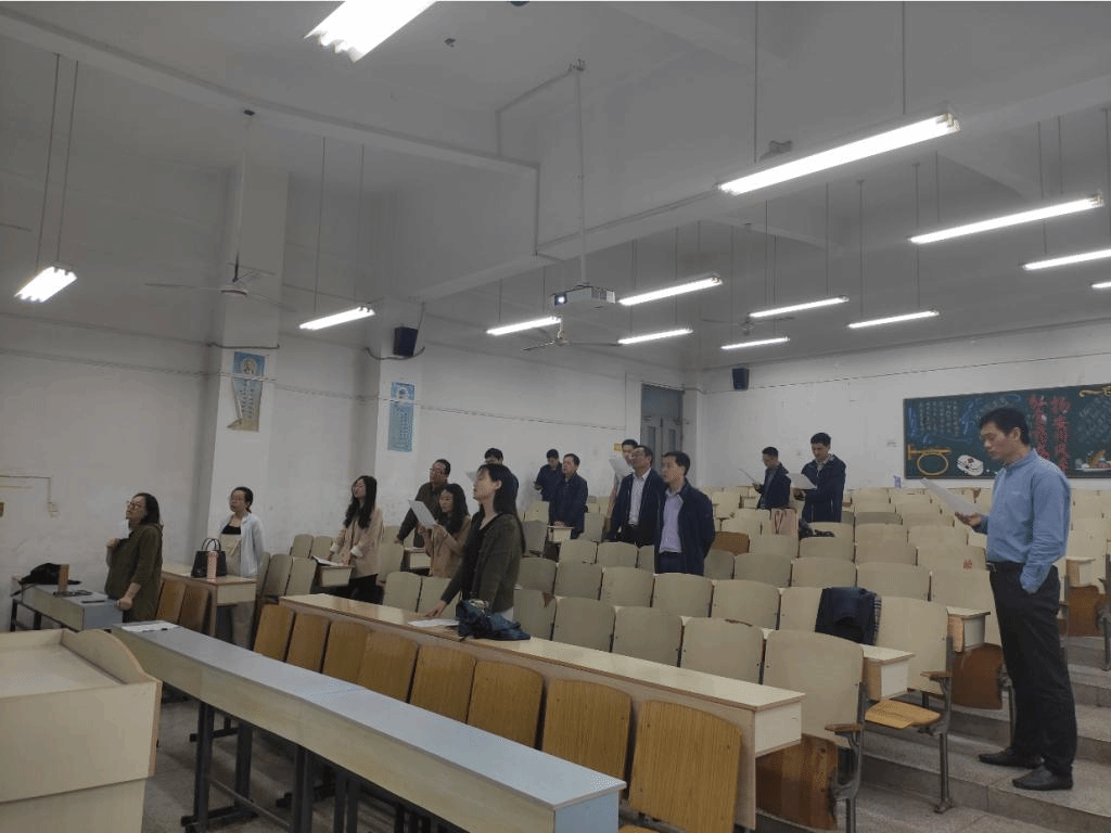 5月19日下午,食品工程学院在求知楼A102教室排练红歌《唱支山歌给党听》,全院全体工会会员参加。活动由院工会主席张献领组织,聘请学院辅导员吴玘担任红歌活动指挥及领唱,院党委书记付光玺、院长杜传来、院党委副书记王广良、副院长翟立公积极参加排练合唱。