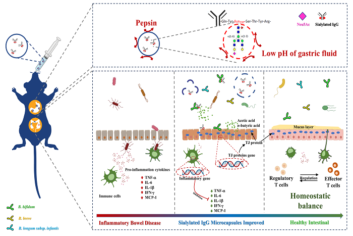 该成果在前期研究基础上,揭示了唾液酸化IgG微胶囊通过促进关键菌株B. bi?dum增殖抑制促炎症因子并增强肠黏膜屏障的作用机制。该研究结果不仅为治疗IBD提供了新的思路,也为评估母乳中免疫球蛋白的生物学特性提供了全新视角,具有较高的理论意义和实用价值;审稿编辑对该团队在生物功能性成分的系列研究成果给予了充分的肯定。该研究获国家重点研发计划(2017YFD0400600)、国家自然科学基金项目(31901617)、安徽省高等学校科学研究重大项目(2022AH040236)、安徽省优秀人才支持计划重点项目(gxyqZD2021125)的资助。原文发表地址https://pubs.acs.org/doi/full/10.1021/acs.jafc.3c07733。