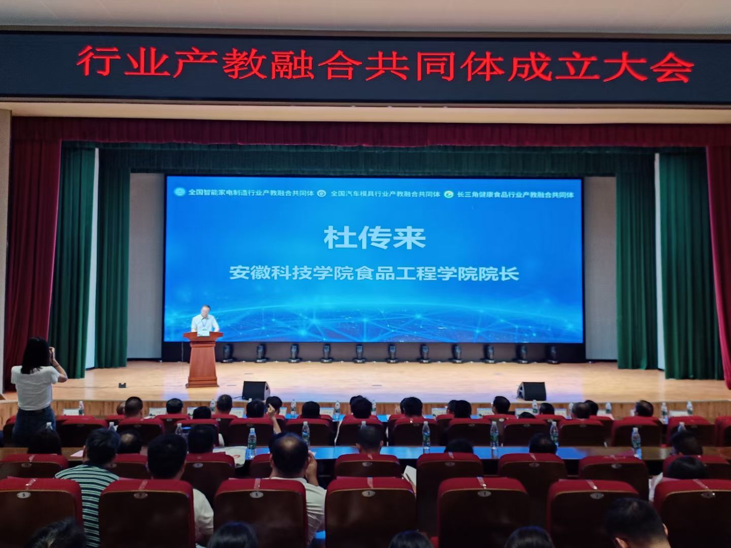 6月28日上午,长三角健康食品行业产教融合共同体成立大会暨第一届理事会大会在滁州职业技术学院召开。大会由安徽盼盼食品有限公司、安徽科技学院、滁州职业技术学院共同主办。我院作为此次产教融合共同体的共同发起单位,食品工程学院院长杜传来全程参与此次成立大会。