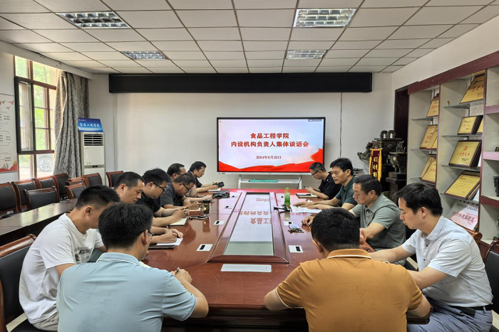 8月20日上午,食品工程学院在学院会议室召开内设机构负责人集体谈话会,学院全体党政领导出席会议,内设机构原负责人及新任负责人参会,会议由学院党委书记付光玺主持。