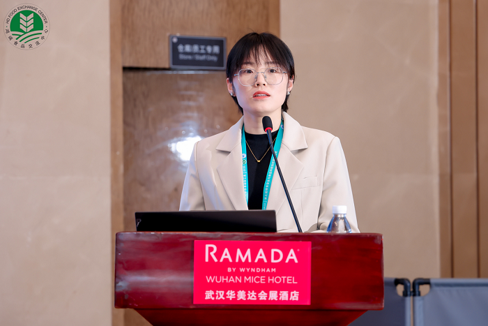翟立公副院长以“杂豆糯米粉重构对低GI汤圆品质影响”为题作学术报告。报告中系统分析了传统糯米粉制品的高GI特性及其健康风险,提出通过杂豆与糯米粉的精准复配技术,并结合湿热技术对混合淀粉进行改性,利用杂豆中丰富的膳食纤维和抗性淀粉等功能组分,有效调控淀粉消化特性,成功开发出具有低升糖指数特性的红豆糯米汤圆专用粉。该研究不仅阐明了杂豆组分对糯米粉GI值的调控机制,更为传统糯米制品的健康化改造提供了切实可行的技术方案。