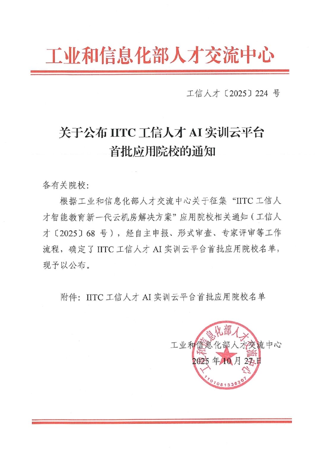 我校入选工信部“IITC工信人才AI实训云平台”试点高校
