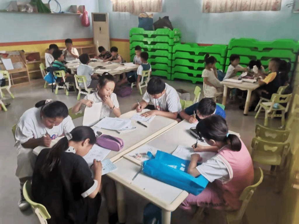 在支教活动中,实践团队分成两队分别了解探望村中暑假期间父母不在身边的孩子的生活情况、学习情况等,以及向幼儿园园长了解幼儿园入学人数的相关情况并与她交谈场地的提供问题。团队成员秉承着树立梦想从学习开始的观念,找到一些暑假在家但无父母照看的孩子,在梅屯幼儿园建立教育点并根据学生的年龄和所学知识分成两个班进行支教授课。实践过程中,团队成员以拓展课外知识,丰富学生的课余生活为主为孩子们开设了以成长讲座、故事会、汉字课、图片绘画(图片展)以及英语课、篮球课等形式的支教活动。