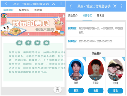 为提升学生实践能力,此次活动要求同学们自己动手去制作并展示能够代表自己家乡和家庭的美食。同学们认真准备食材,亲自制作,并用简短的语言,从美食名称的来源,到每一步制作过程,再到它的味道和意义,一一呈现给大家。同时从他们的个人感悟中能够体会到对家乡的热爱和深情。活动最终通过易班轻应用微视频展示并投票,评选出相关奖项。
