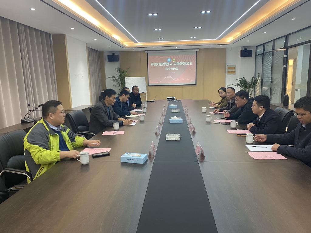 在安徽省淮酒酒业有限公司,总经理俞江介绍了公司概况、发展思路和品牌战略以及用人需求等情况。付光玺介绍了我校历史沿革、校区分布、院系设置、人才培养、科学研究、校企合作、学生实习就业等方面情况。双方围绕发挥校企优势,进行多层次、多形式、多领域合作,实现校企资源优化配置交流了意见。