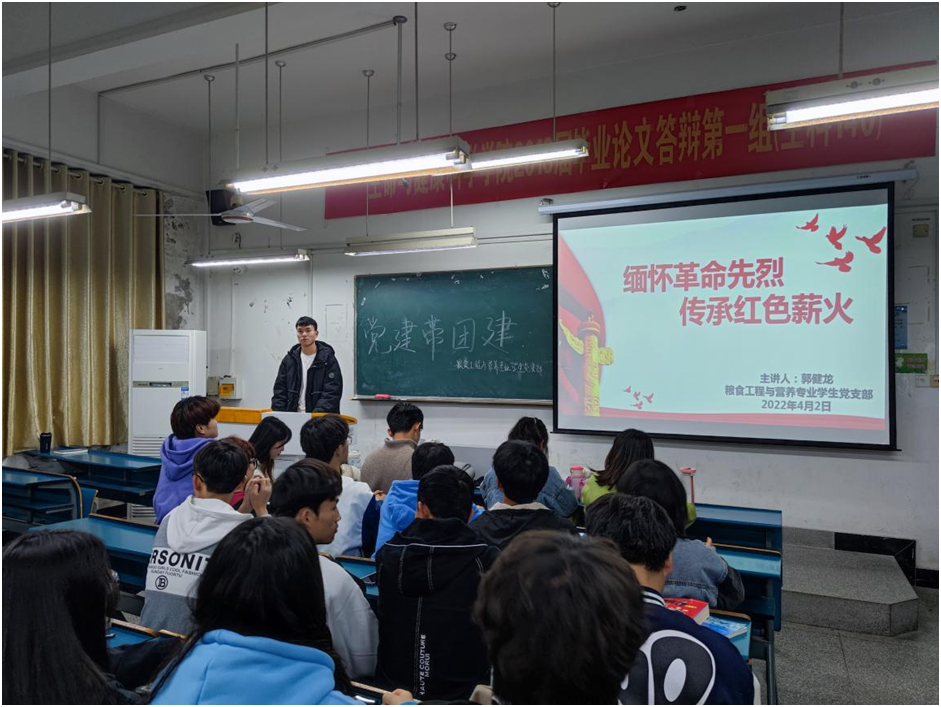 为深入推进党史学习教育,坚定大学生理想信念,食品工程学院粮食工程与营养专业学生党支部利用清明假期,面向学院2021级各团支部开展了以“缅怀革命先烈、传承红色薪火”为主题的党课宣讲活动。