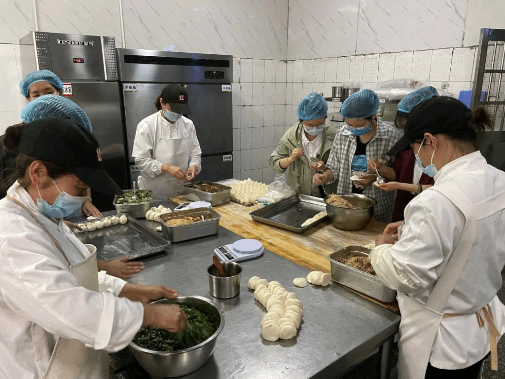 在严格落实疫情防控要求的前提下和征得食堂经理同意后,同学们戴好口罩、穿好专用服装,在食堂工作人员的带领下走进食堂后厨,同学们认真聆听讲解,对食品原料的采购、贮存、加工等工作流程有了清晰的了解,经过积极交流,拉近了同学们与食堂工作人员之间的距离,增进了彼此之间的沟通和理解。同学们从洗菜、配菜到包饺子,再从收拾餐桌到擦玻璃,主动挑起担子,分担着厨师和工作人员的工作。一个个忙碌的身影,认真工作的样子,让我们看到了劳动的美丽。