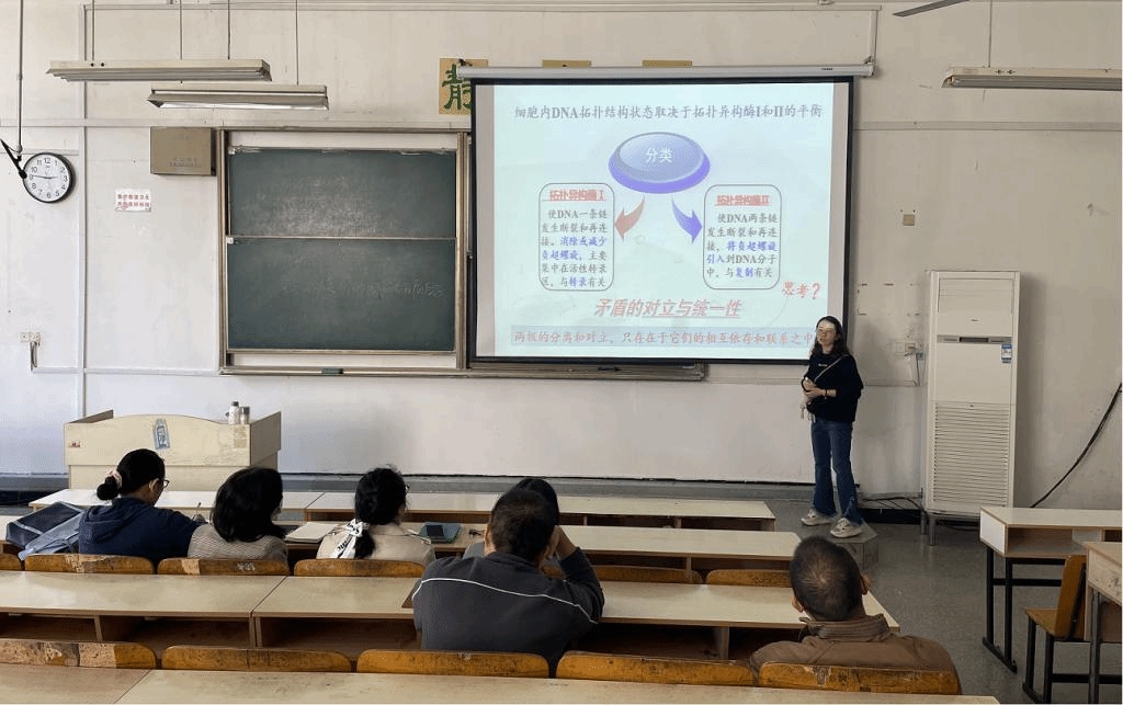 张齐老师以《生物化学》为例进行思政示范教学展示,将第十章参与DNA复制的酶和蛋白质因子授课内容与思政元素进行有机融合。在讲授过程运用多样化的教学方式,如线上、线下混合式教学、问题教学法和案例教学法,讲述我国科技工作者经过不懈努力取得辉煌成果的真实事例,激发对知识的探究热情、民族自豪感和时代重任的担当意识。如介绍DNA聚合酶的发现到中国人在自然科学领域诺贝尔奖零的突破——“屠呦呦获诺贝尔奖”事例,鼓励学生在工作和学习中艰苦奋斗、克服困难、勇于拼搏,这样才能取得令人瞩目的成绩。通过讲解参与DNA复制酶系总览图,强调完成DNA复制需要多种酶的共同作用,说明团队协作的重要性,延伸到我国广大航天工作者同舟共济、团结协作,从神舟五号到神舟十四号,接续奋斗、奔赴宇宙的典型案例,传递团队协作意识,树立正确的价值观,学会利益共享,相互配合。