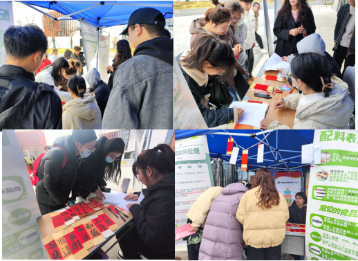 现场互动环节更是精彩纷呈。“食安知识大闯关”游戏吸引了众多同学跃跃欲试,参与者需在规定时间内回答与食品安全相关的题目,从辨别变质食品的特征到了解食品添加剂的合理使用范围以及消费者维护权益的渠道等,活动题目围绕日常生活展开。同学们抽选题目,仔细辨别选项,获得奖品的同学挑选自己喜欢的祝福语;在欢乐的竞赛氛围中,食品安全知识悄然深入人心。