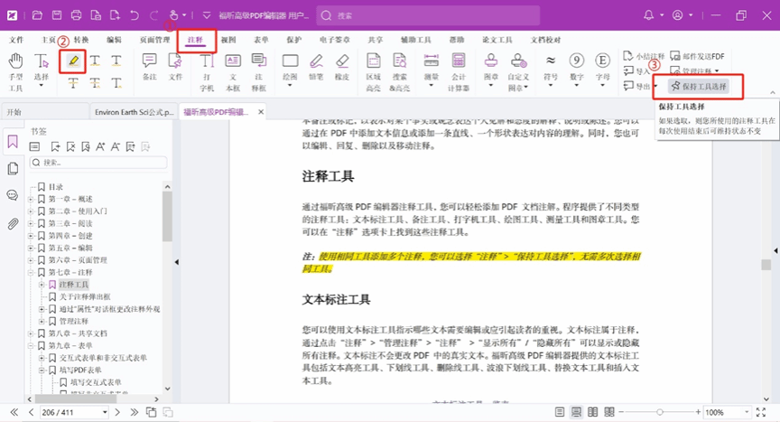 如果需要使用相同工具添加多个注释时,我们可以在选择完注释工具时点击 “保持工具选择”,这样就无需多次选择相同工具啦!