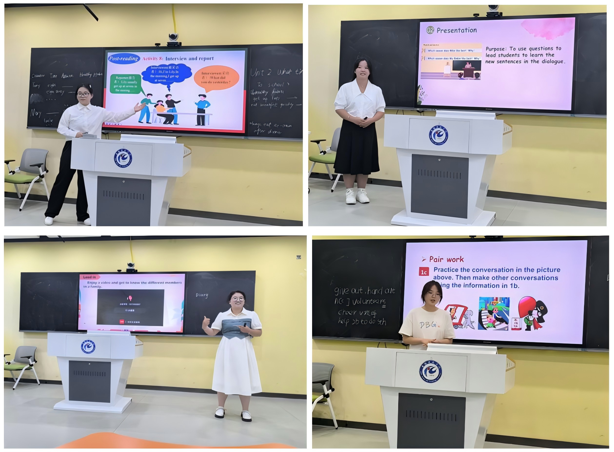 赛前,指导教师对参赛学生的选题、教学设计、课件制作和授课方法等方面进行了指导,保证了比赛的水平和质量。 比赛过程中,参赛选手仪表得体、教态自然、精神饱满,教学内容充实生动,教学方法灵活多样,教学目标清晰明确,充分利用现代教育技术,注重课堂互动,英语表达规范准确,充分体现了良好的专业素养和扎实的语言基本功。