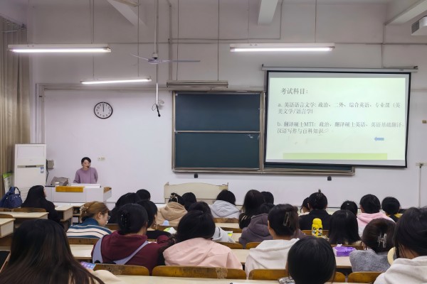 为帮助同学们更好地了解考研形势、尽早地明确考研目标,10月30日下午,外国语学院分别在求知楼A 107和105教室分专业举办考研讲座。讲座邀请外国语学院衡鹏、孙玉梅两位老师主讲。学院党委副书记张海亮和2022级全体学生一同听取讲座,讲座由副科级辅导员张薇薇主持。