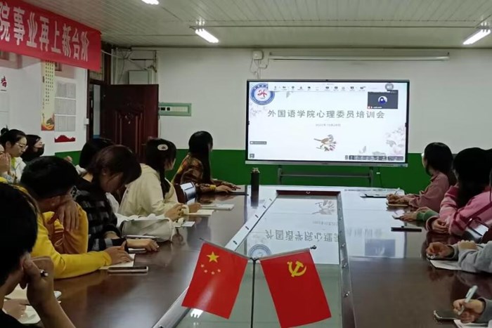 为提高班级心理委员专业知识的掌握和运用能力,顺利开展班级心理健康工作,10月30日晚,外国语学院在学院会议室举办以“用沟通做好情绪疏导”为主题的心理委员集中培训会。学院党委副书记张海亮和学院全体班级心理委员共同参加培训,培训会由专职辅导员张薇薇主讲。