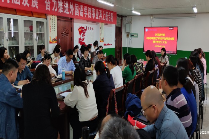 外国语学院召开普通高等学校本科教育教学审核评估推进会暨期中教职工大会