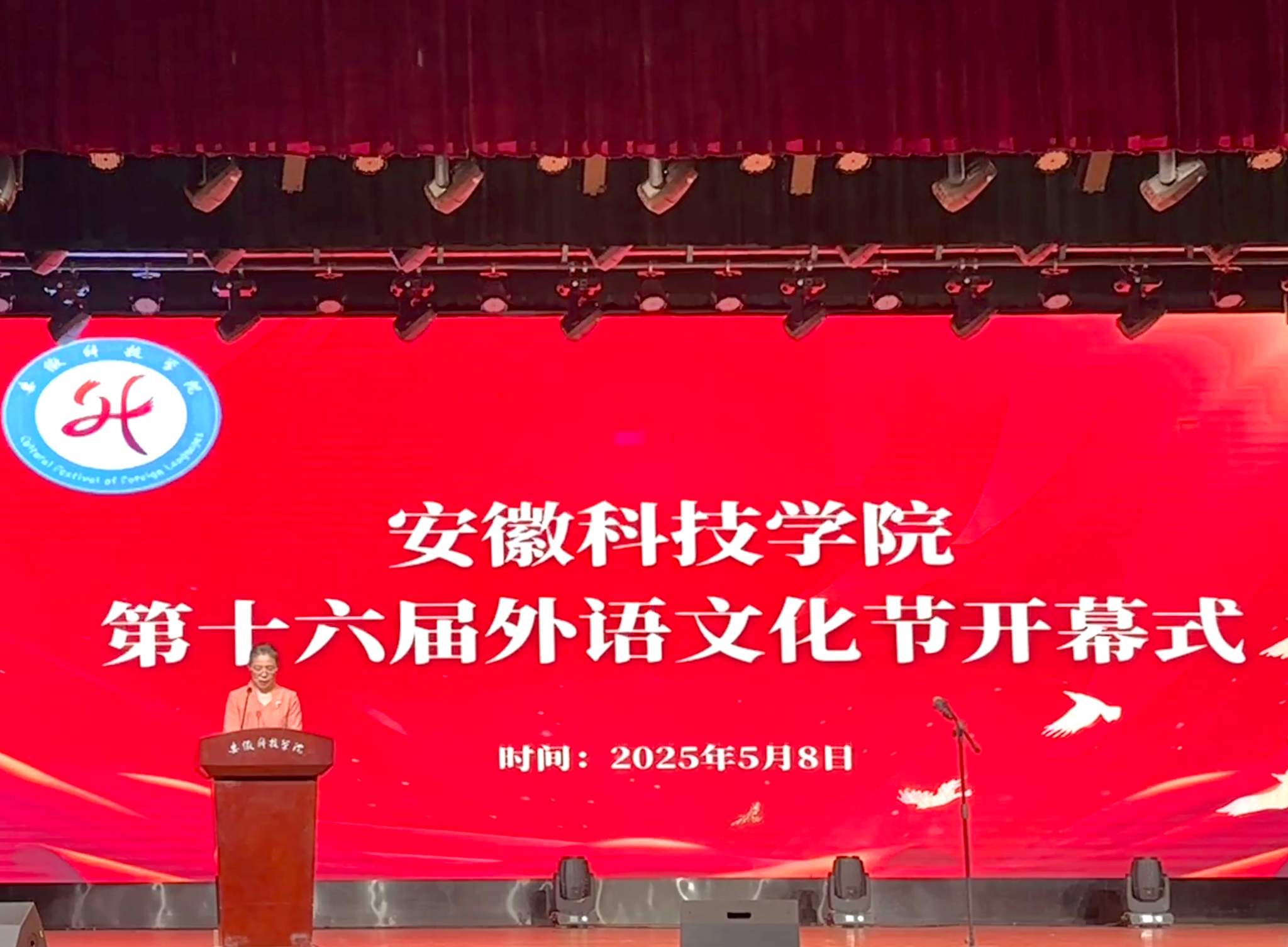 5月8日晚,安徽科技学院第十六届外语文化节在大学生活动中心隆重开幕。校国际交流与合作处处长何世潮、外国语学院党政班子及400余名师生共襄盛典。学院党委书记蔡为青主持开幕式。