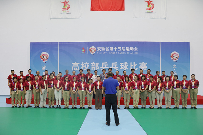 8月26日下午,安徽省第十五届运动会高校部乒乓球比赛组委会临时党支部在安徽科技学院凤阳校区西区体育馆开展主题党课活动。主题党课由比赛仲裁、临时党支部书记秦纪强教授主讲,全体裁判员参加。