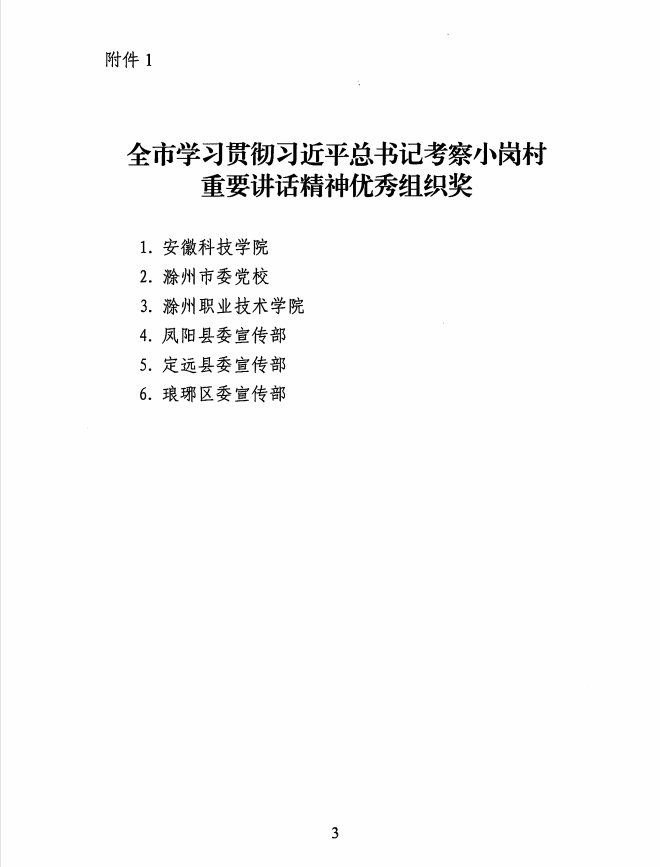 日前,滁州市委宣传部发布《中国足彩网全市学习贯彻习近平总书记考察小岗村重要讲话精神征文活动优秀征文的通报》(滁宣通字〔2022〕12号),我校在此次征文活动中荣获优秀组织奖(排名第一),四篇文章获评优秀征文。