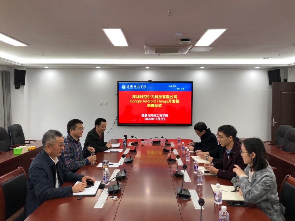 在学校70周年华诞之际,11月7日下午,深圳时空引力科技有限公司创始人、2007届工商管理专业毕业生夏东明校友重返母校,向学院捐赠总价值近70000元的Google Android Things开发板,以此来表达对母校深深的思念之情和感恩之心,为母校70周岁生日献礼,捐赠仪式在蚌埠龙湖校区西附楼416隆重举行。学院党总支书记王振其、院长余宏杰、学院教师代表吕雅洁等出席了仪式,仪式由王振其主持。