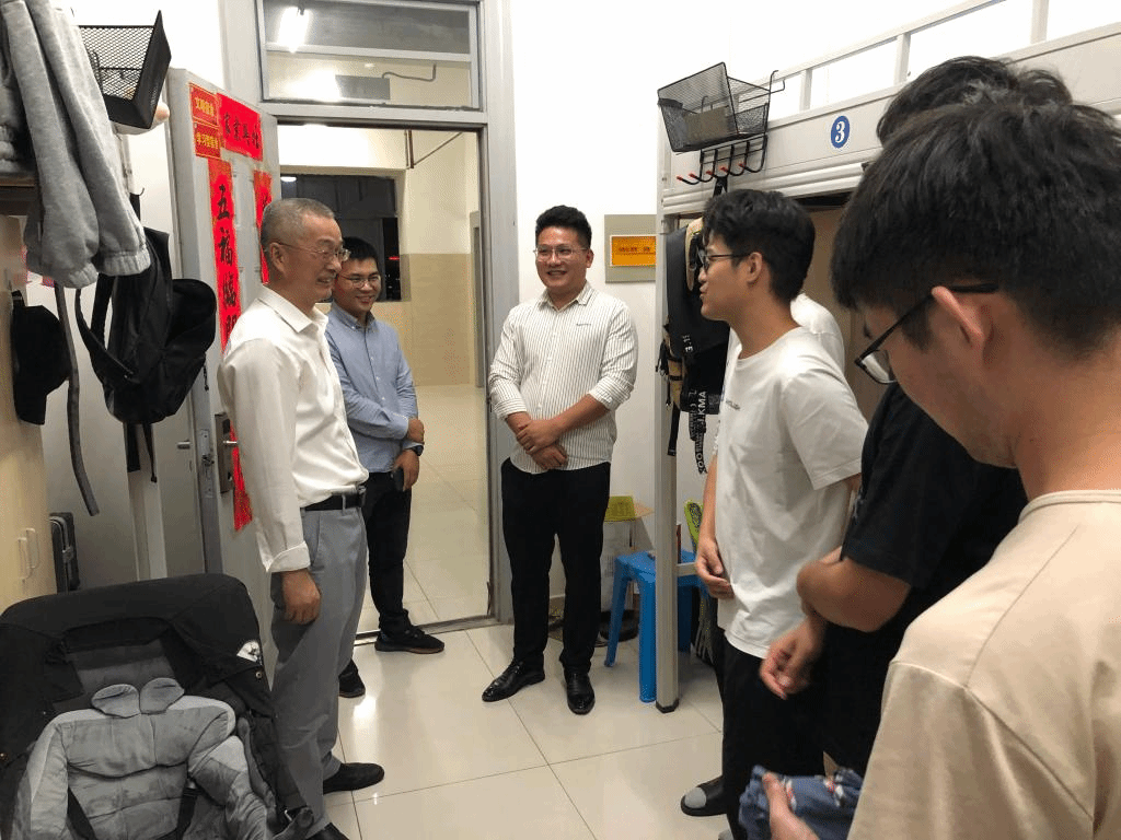王振其一行走进学生宿舍,与学生亲切交流,重点了解了返校学生暑期学习生活状态及新学期的思想动态,叮嘱各位同学要认清当前疫情防控形势,遵守学校有关疫情防控规定,落实“非必要不外出,确需外出要履行请假审批手续”。此外,他还交代同学们要认真制定新学期学习和生活规划,加强与任课老师的沟通交流,积极面对学习和生活中存在的困惑和问题,争取新的学期有新的收获。