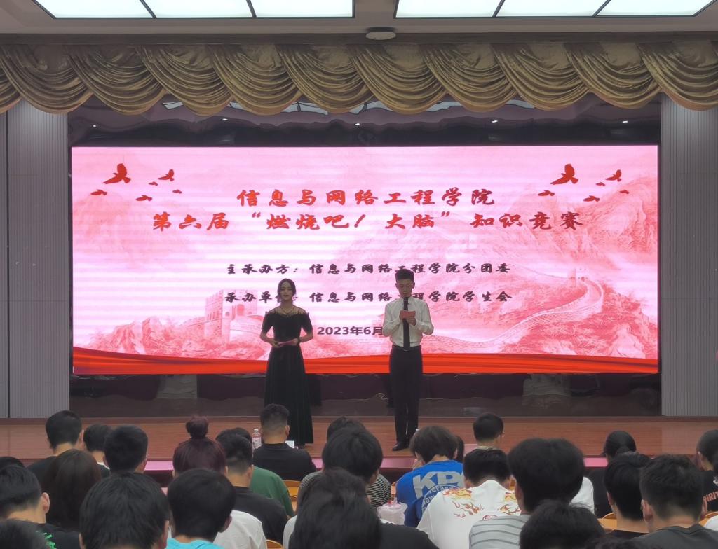 为丰富广大学生课余文化生活,增强学生网络安全意识,营造网络安全、人人有责的良好氛围,6月11日,信息网络工程学院在敏行楼102报告厅举办了第六届“燃烧吧!大脑”知识竞赛决赛活动。信息与网络工程学院学生会指导老师崔北坤、专职辅导员许磊出席本次活动,22级全体学生干部观看本次活动。