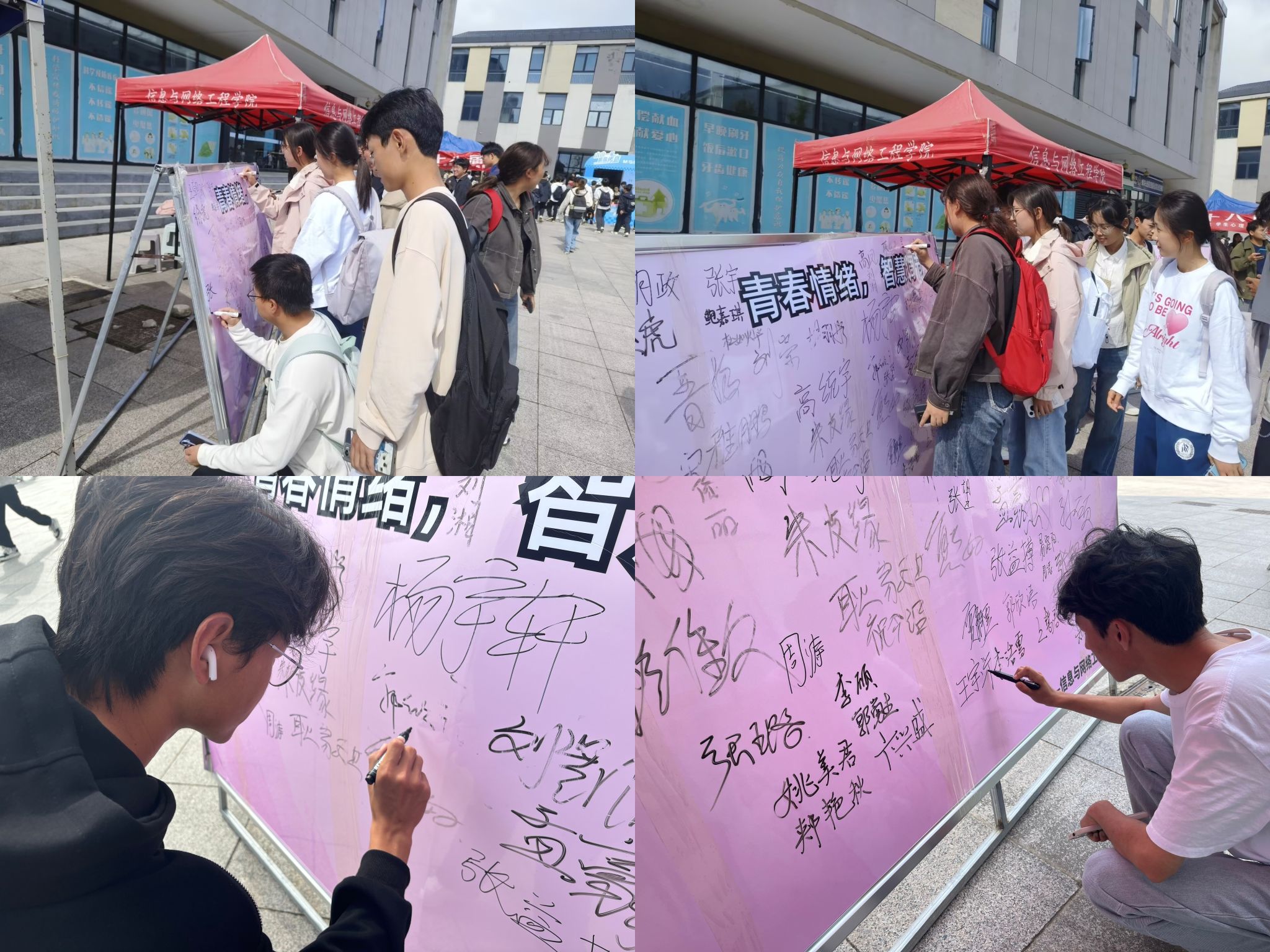 2024年10月16日,为广泛宣传普及心理知识,学院心联在龙湖校区众创空间东侧广场进行了以“新旅程,心同行”为主题的展板宣传活动,并进行了以“青春情绪,智慧调节”为主题的签名活动。活动现场,同学们纷纷参与其中,积极学习心理健康知识,了解心理健康对大学生活的重要性,帮助大学生更好更快地适应新生活。