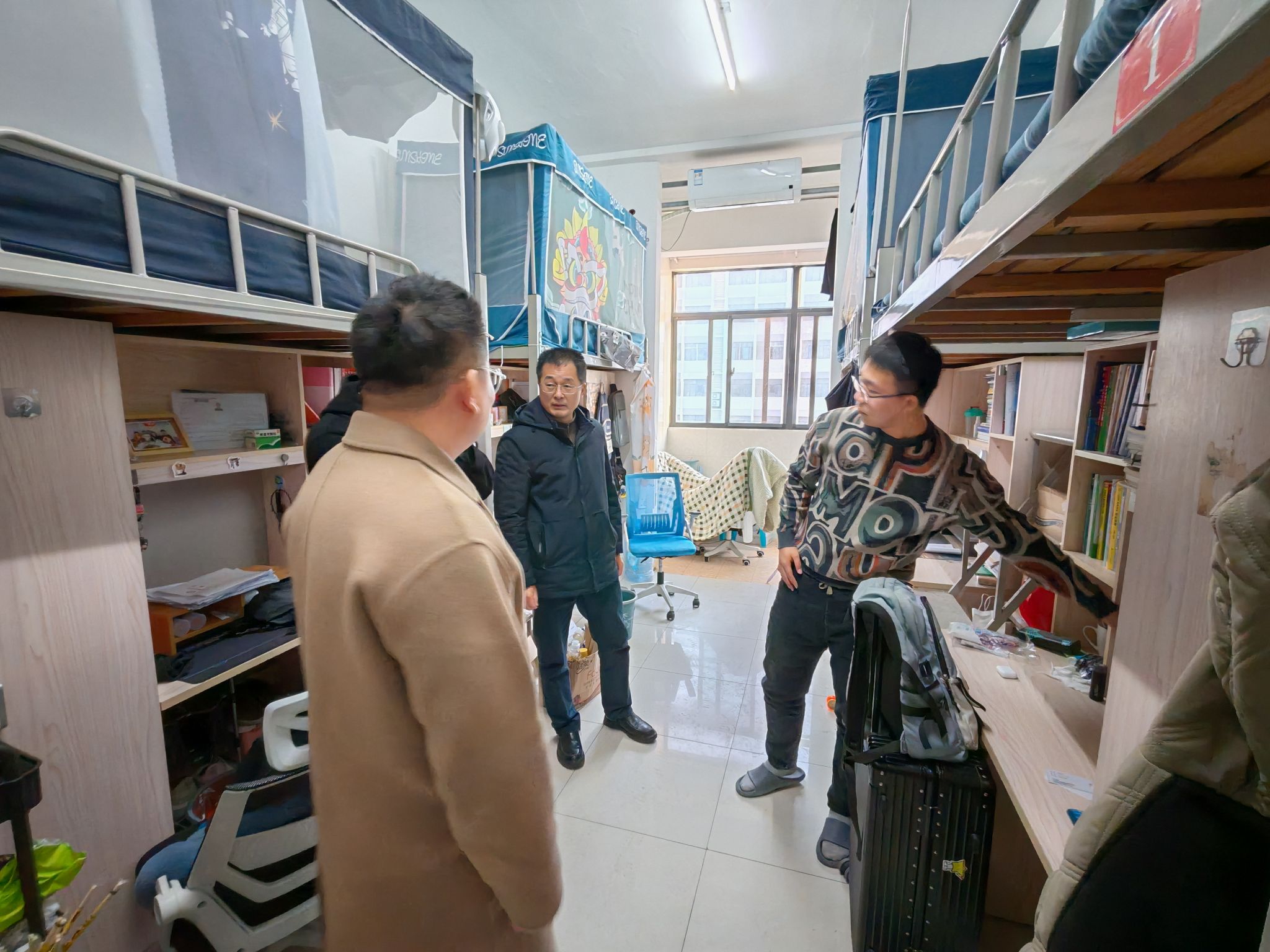 在走访过程中,王振其等人分组走进学生宿舍,与同学们亲切交谈,详细询问同学们假期生活的点滴,了解学生在生活设施、学业辅导等方面的需求,并针对学生提出的课程衔接、学习情况等方面给予针对性建议。最后,鼓励大家在新学期要制定清晰目标,合理安排学习时间,努力提高自律与独立生活能力,积极参与学术研究与实践活动,不断提升自我综合能力。