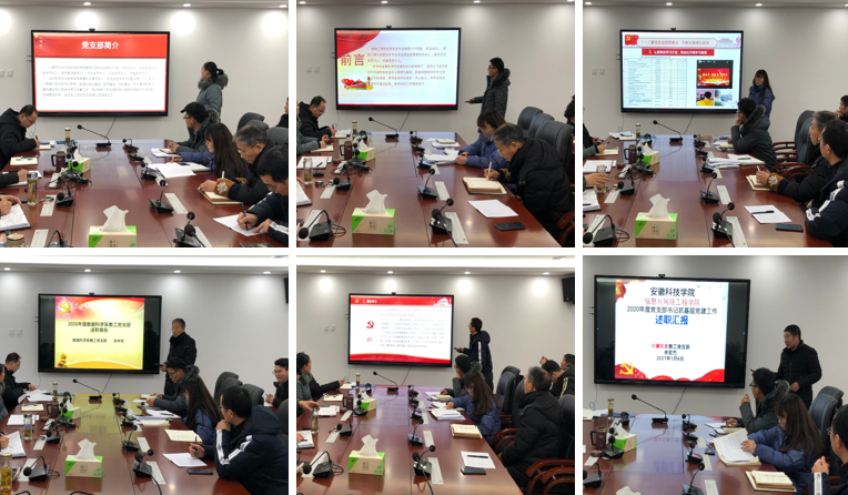 为推动全面从严治党向基层党支部延伸,全面提升学院党建工作水平,根据《中共安徽科技学院委员会中国足彩网开展2020年度基层党组织书记抓党建述职评议考核工作的通知》文件精神要求,1月6日下午,信息与网络工程学院在龙湖校区综合信息中心西附楼416会议室召开党支部书记抓党建述职评议考核工作会议,学院党委委员、党支部书记、党支部委员、教师代表参加会议,会议由信息与网络工程学院党委书记王振其主持。