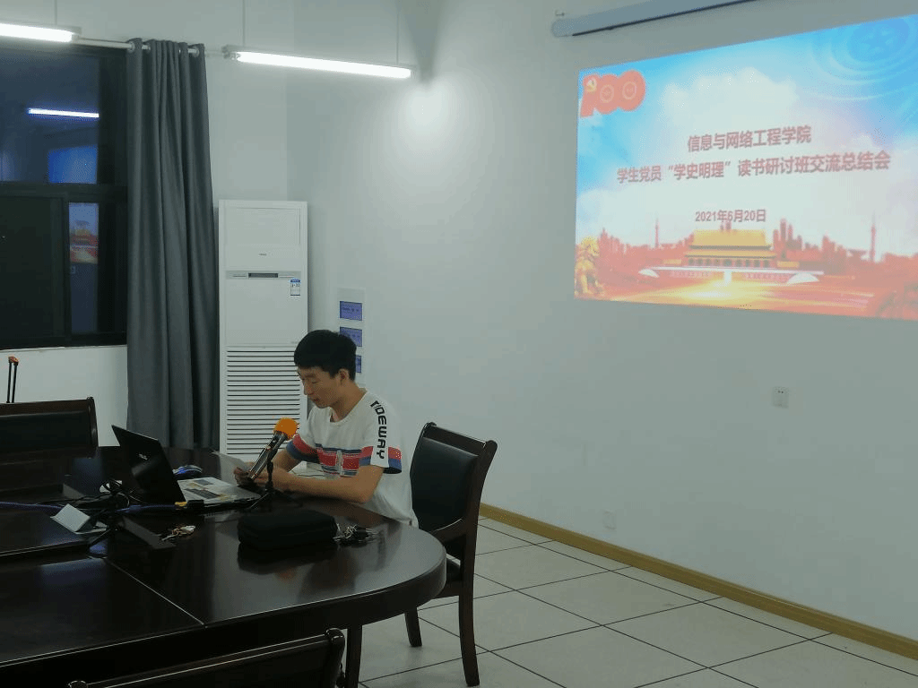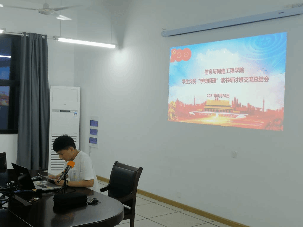 6月20日晚,信息与网络工程学院于尚行楼B418会议室召开学生党员“学史明理” 读书研讨班交流总结会,网络工程专业学生党支部书记李军成和学院全体学生党员参加,会议由李军成主持。