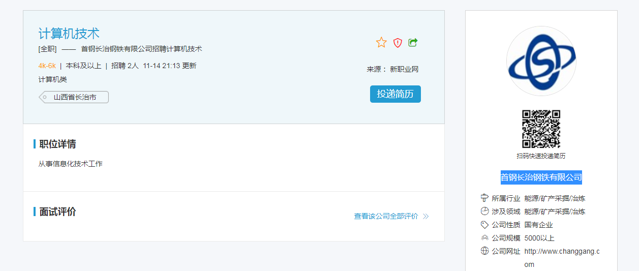 首钢长治钢铁有限公司招聘信息