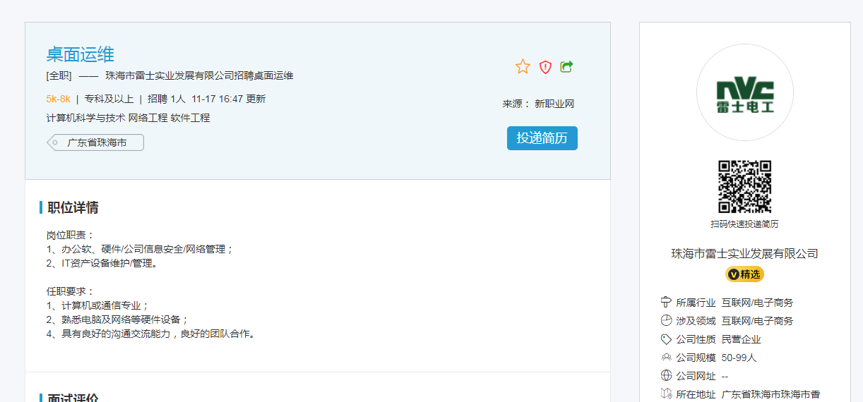 上一条:中建四局深圳实业有限公司招聘信息 下一条:上海华筑信息科技有限公司招聘信息