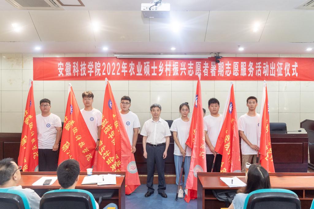 蒋德勤宣布安徽科技学院2022年农业硕士乡村振兴志愿者暑期志愿服务活动正式启动,并为12支暑期志愿服务团队授旗。同时,他对各志愿服务团队提出了殷切希望,寄语了美好祝福。