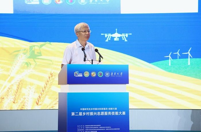郭鑫在致辞中指出2020年全国农业教指委指导成立全国农科研究生志愿服务联盟。同年,中国研究生乡村振兴科技强农+创新大赛纳入中国研究生创新实践系列大赛,乡村振兴志愿服务技能大赛作为重要赛道,为农科研究生服务乡村振兴、提升实践创新能力搭建了优质交流平台。他特别感谢鲁东大学和安徽科技学院为赛事成功举办所做的筹备工作。同时,他寄语参赛研究生,要践行习近平总书记给 “科技小院” 的回信精神,志存高远、脚踏实地,将课堂学习与乡村实践紧密结合,厚植爱农情怀、练就兴农本领,在乡村振兴大舞台建功立业,为农业农村现代化、社会主义现代化国家建设贡献青春力量。