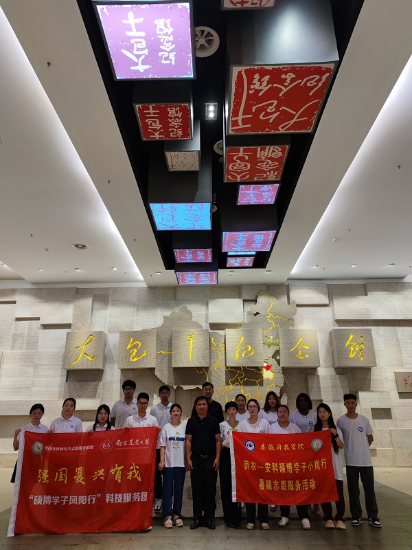 为深入贯彻落实国家乡村振兴战略,践行全国农科研究生志愿服务联盟宗旨,7月4日至7月9日,安徽科技学院和南京农业大学的农科研究生联合组成志愿服务团队,在中国农村改革第一村——凤阳县小岗村共同开展“南农-安科硕博学子小岗行”农科研究生志愿服务活动。志愿服务团队的研究生们分为水稻和果树两个分队,分别开展技术服务。我校农艺与种业领域4名研究生参与活动,农学院李文阳副院长和任兰天教授全程参与。