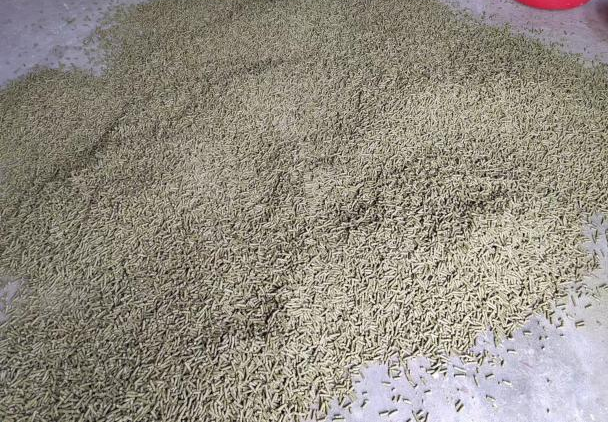 在走访当地养殖户时我们发现,大多数养殖户在冬春季时饲草料严重不足,饲喂羊时仅靠花生藤、油菜籽壳、玉米秸秆、枯稻干草进行饲喂,不仅适口性差难以保障怀孕母羊的营养水平,而且无法满足育肥羊的生长需要。因此,我们向当地农户提供了农作物秸秆生化颗粒饲料生产技术以及裹包青贮技术,从而保证优质饲草料供应的延续性。