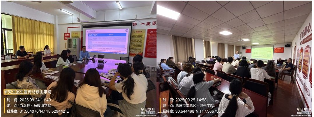 为进一步提升学院研究生教育品牌影响力,精准对接优质生源需求,9月24日至26日,由资源与环境学院副院长李飞跃带队,研究生秘书孟凡德及青年教师何浏洋组成的宣讲团队,先后赴马鞍山学院、皖江工学院、池州学院、黄山学院及蚌埠学院等多地高校开展2026年硕士研究生招生专题宣讲会。