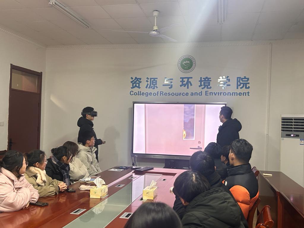 为增强大学生的安全意识,普及消防安全知识,12月21日晚上,资源与环境学院于东办公楼会议室开展VR沉浸式消防安全教育活动。学院专职辅导员孙正浩和部分学生代表参加。