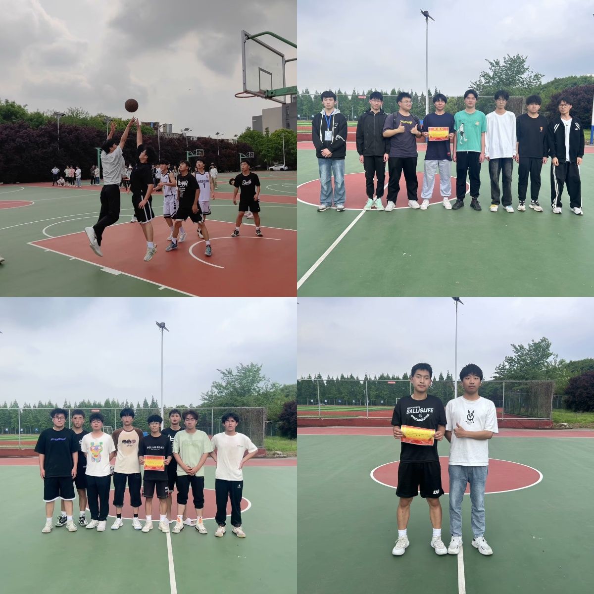 比赛现场,气氛热烈而紧张。观众席上,同学们呐喊助威,为自己支持的队伍加油鼓劲。球场上,队员们你来我往,攻守转换迅速,每一次精准的传球、每一次精彩的上篮都赢得了阵阵掌声。尤其是决赛时刻,双方队员的每一次突破、每一次防守都牵动着在场每一个人的心,赛场上的每一次得分都凝聚了队员们无数次训练和汗水。双方比分你追我赶,最终在历经三次加时赛后,由23级地理信息科学队取得了本次比赛的胜利。